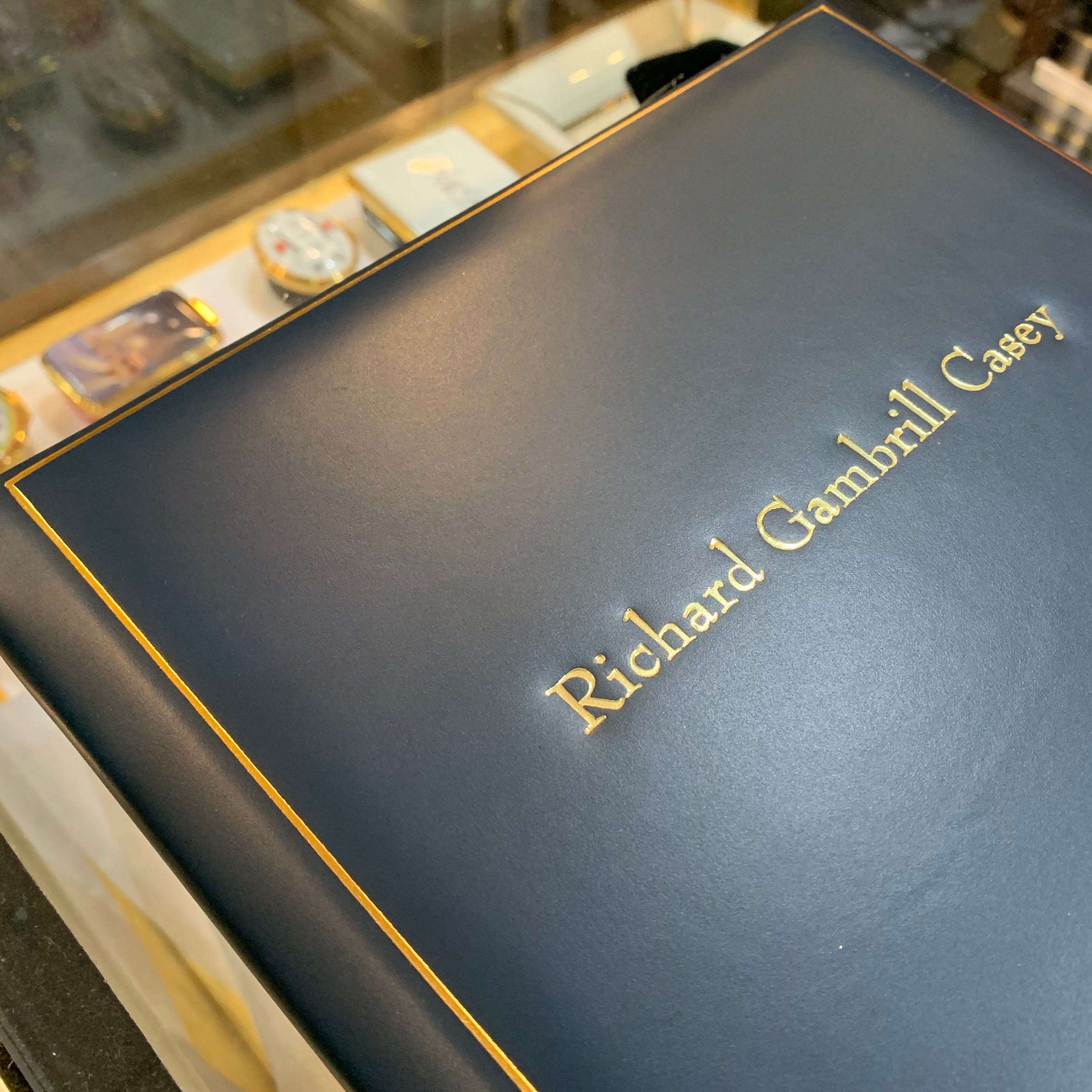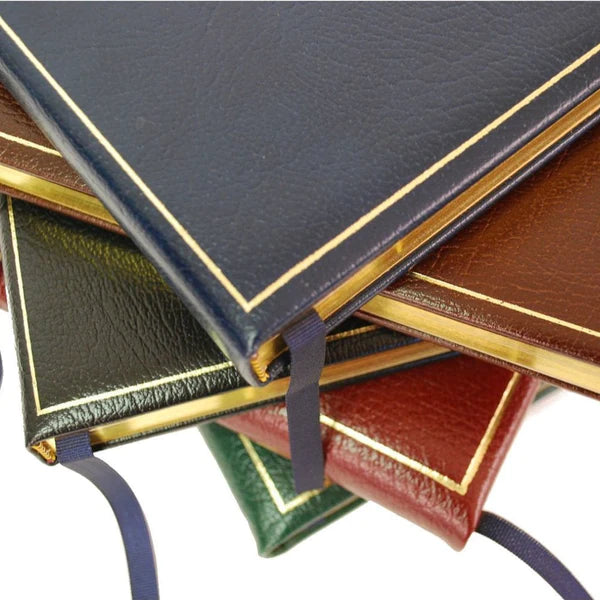 Our glorious leather books and leather accessories are expertly crafted on Canvey Island in Essex, England. Our amazing, hand engraved Stationery is produced in our Press Room / Bindery in Cottage City, Maryland.