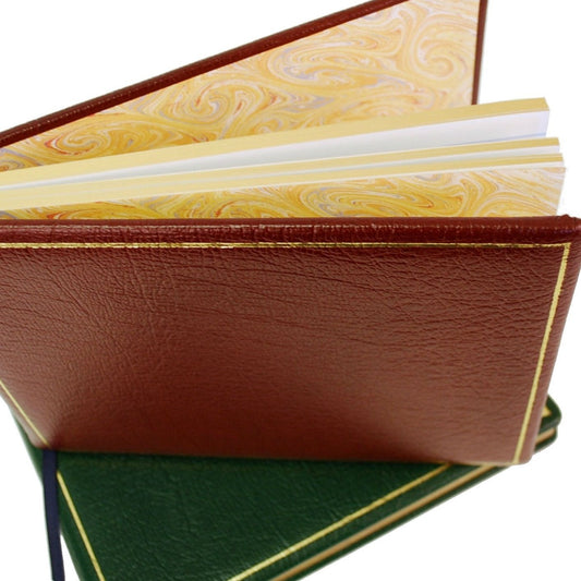 Classic Leather Guest Book | 10 by 8 Inches Vertical | Polished Calf Leather | Gold Tooling | Lined Pages | G108CA