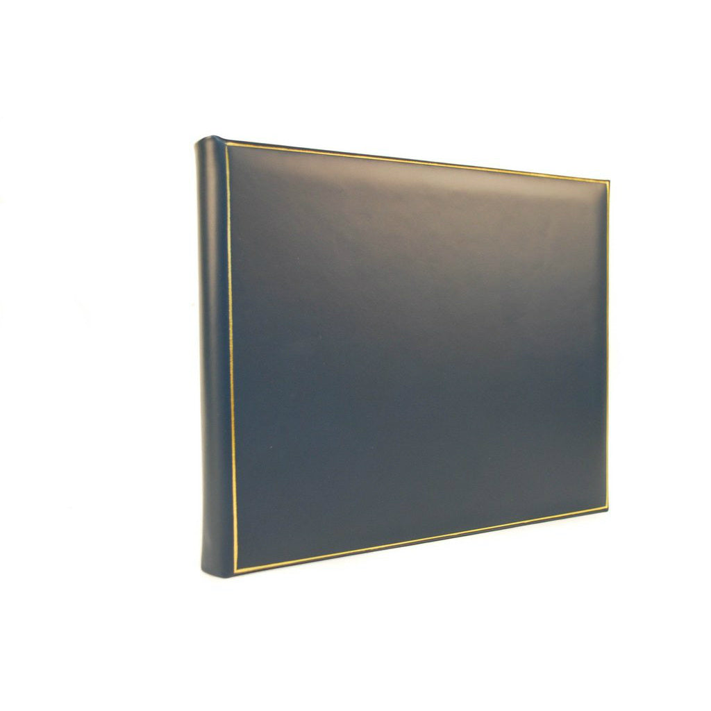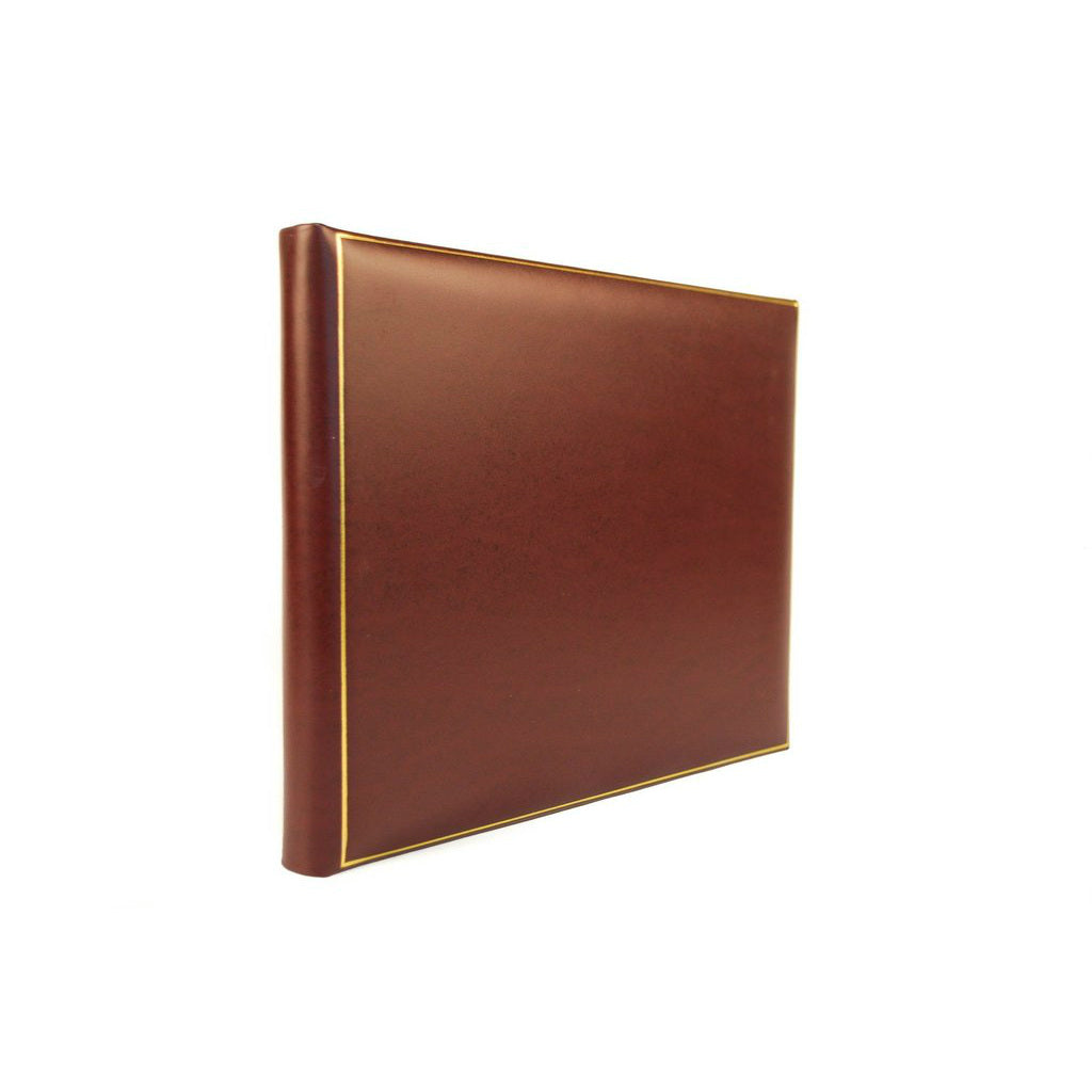 Classic Leather Guest Book | 8 by 10 Inches Horizontal | Superior Quality Smooth Calf | Gold Line on Cover | All Cotton Paper with Blank Pages | Gilt Edges | Custom Gold Stamp Personalization