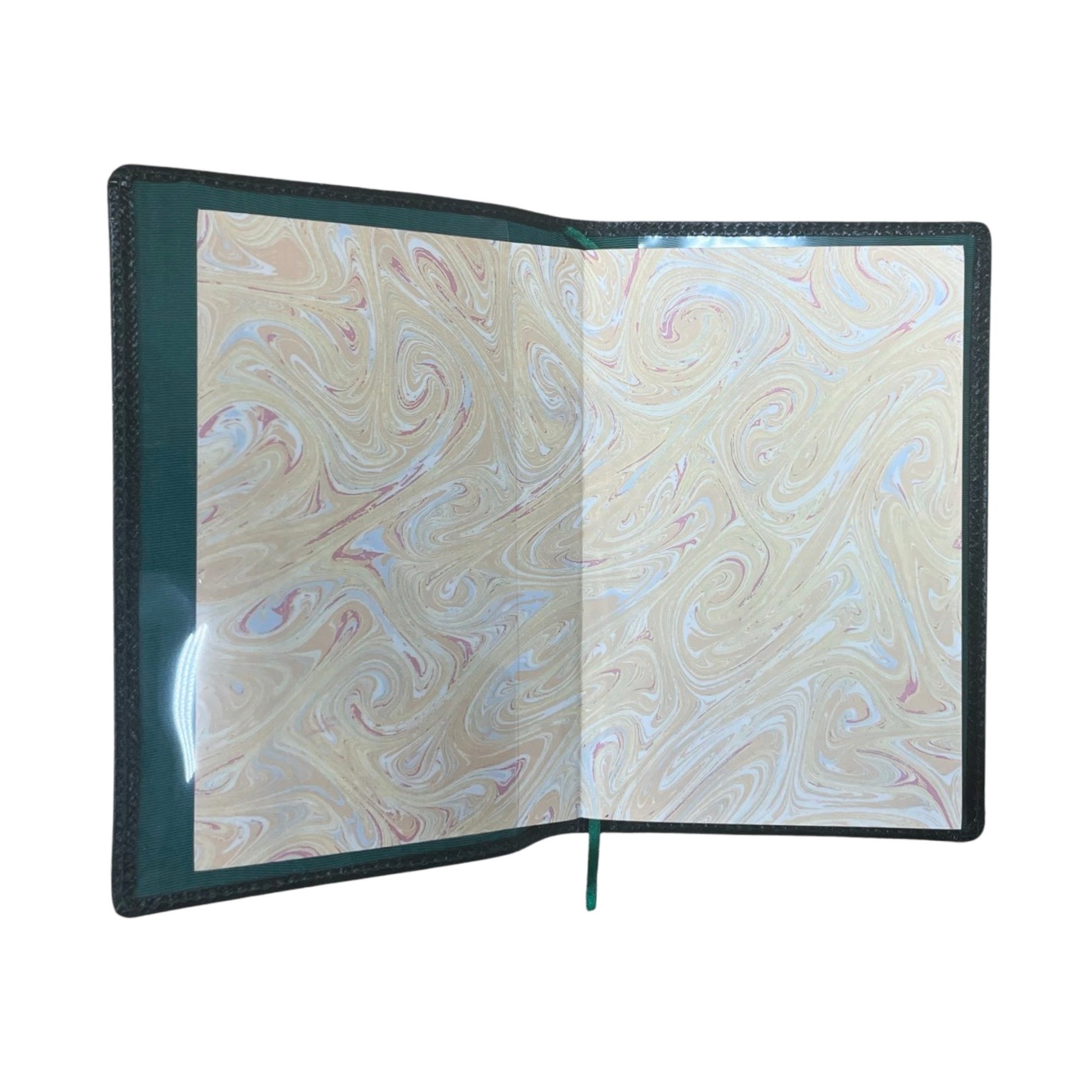 Please Note: the images of our Hunter Green Book shows the lining as more of a dark turquoise. The silk lining is actually the same colour as you see the ribbon marker to be ...Hunter Green!