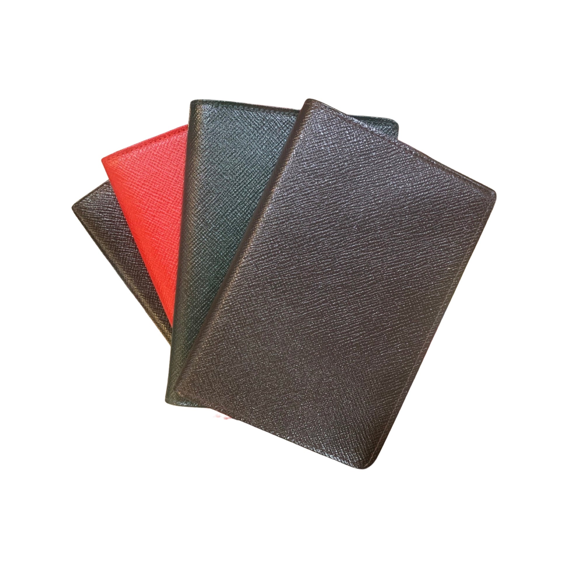 The cover is produced in our famous cross-grain leather. It is flexible and ideal for personalization. Makes a wonderful gift with the addition of initials or a name. Interiors are available for purchase. Made in England by Charing Cross.